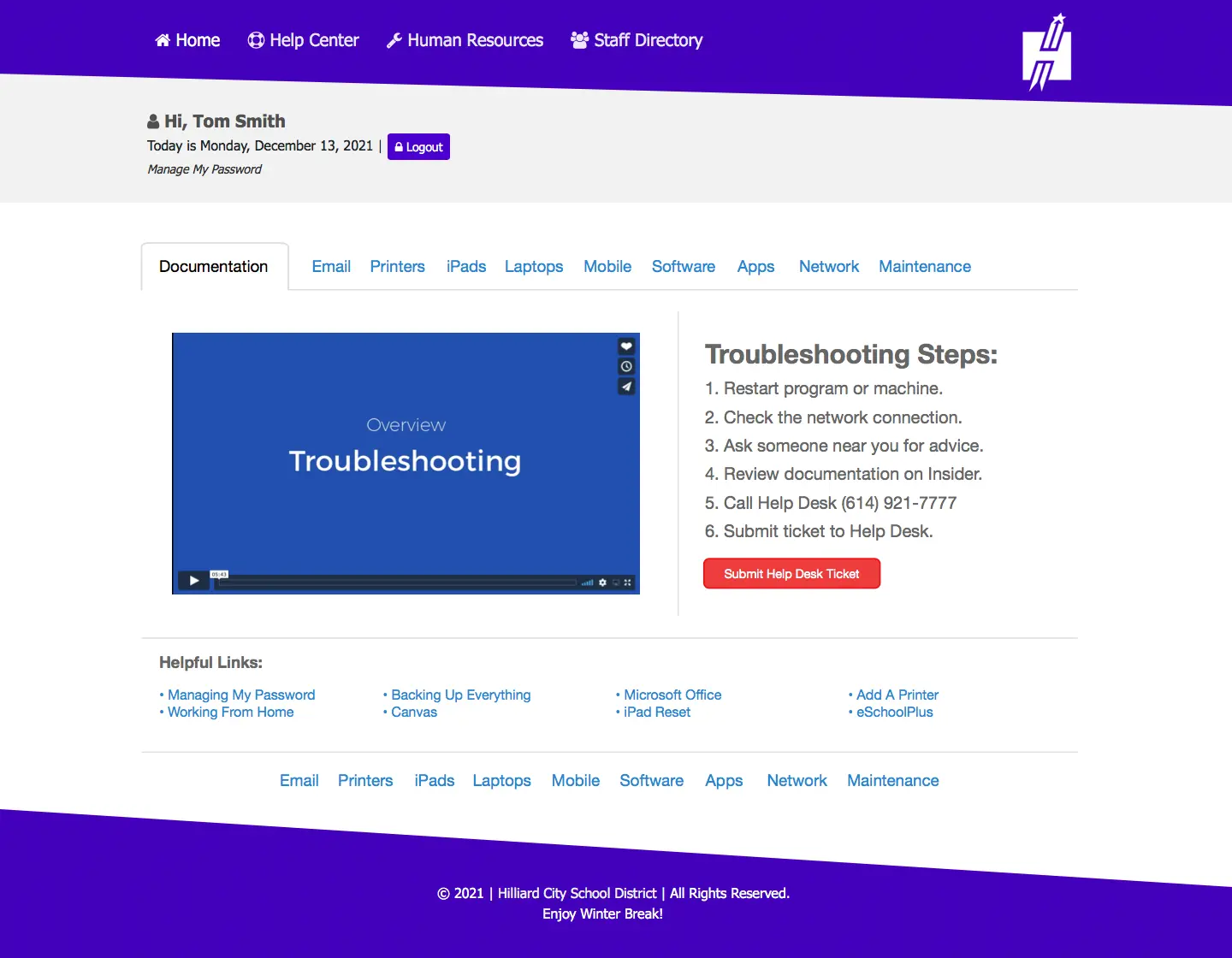 As a UX Designer for HCSD, I understood our users (staff) needs and designed solutions around that. Redesigning the employee portal was important because it greatly improved employee user experience, which led to increased productivity and satisfaction. A poorly designed portal can be confusing and difficult to navigate, causing frustration and wasted time for employees. I addressed these issues by improving the organization and usability of the current portal, making it easier for employees to find the information they needed and perform their tasks efficiently. Additionally, I helped to ensure that the portal was accessible and inclusive for all employees, regardless of their abilities or needs. The previous portal was not responsive on smartphones, or tablets which hurt many users trying to access information away from the office. The previous portal was overflowing with copy, long hyperlinks, tiny thin fonts, and blurry image-sliced buttons.